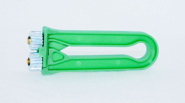 Zusammendrücken der Rädchen wird der Wabendraht gespannt
